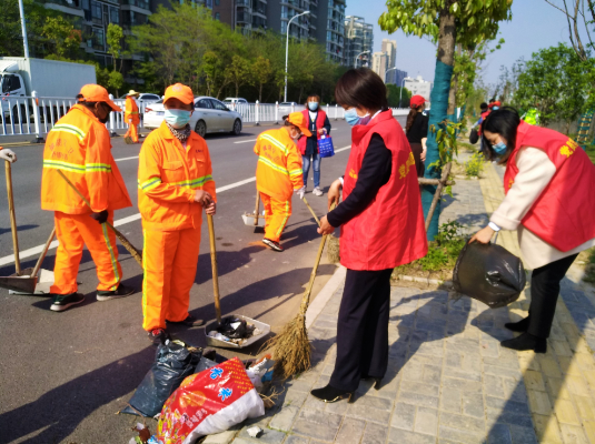 愿者成了一道亮麗的風(fēng)景線,也給社區(qū)帶來了優(yōu)美整潔的環(huán)境,用實際行動喚起了人們的愛環(huán)境意識。全體黨員志愿者身著志愿者隊服,大家手拿掃帚、簸箕等工具,發(fā)揚不怕苦、不怕臟的精神,分工合作,對沿路廢棄物品、塑料垃圾等進行了全面認(rèn)真的清理打掃,不放過任何細(xì)節(jié),雜草、垃圾袋、廢紙屑、小煙頭都被清掃干凈。經(jīng)過大家的努力勞動,道路面貌煥然一新。