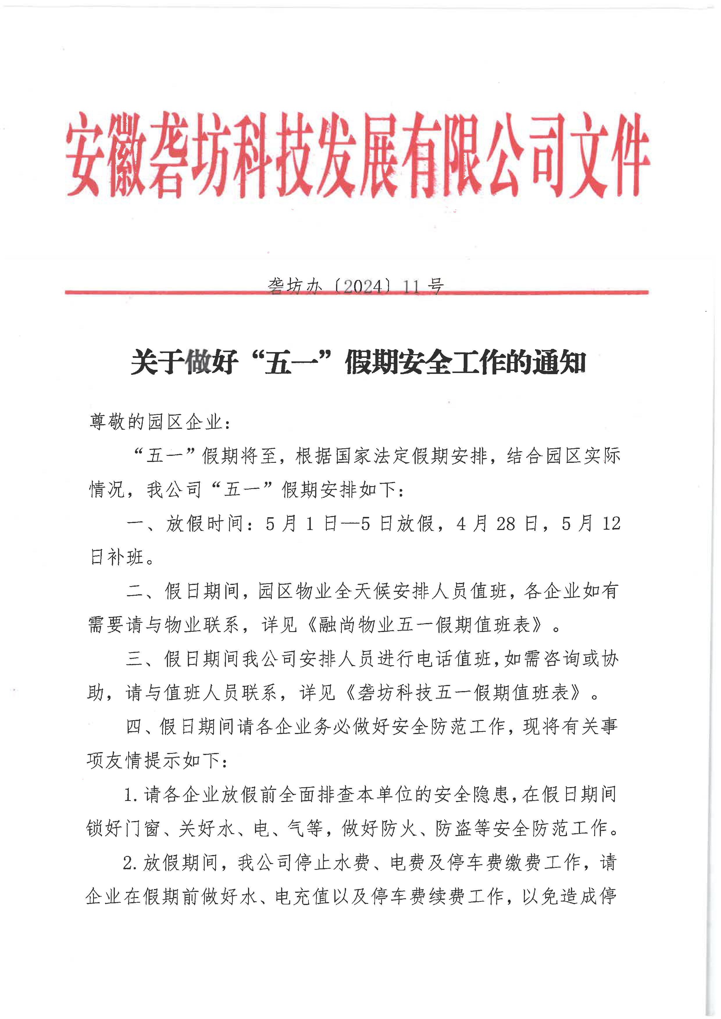 關(guān)于做好“五一”假期安全工作的通知